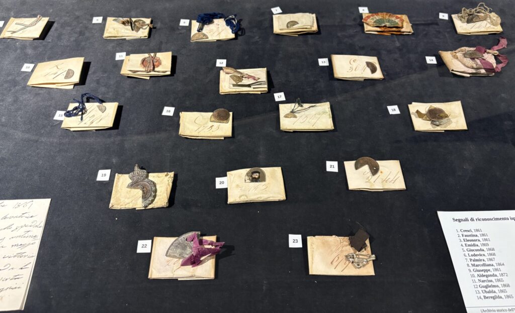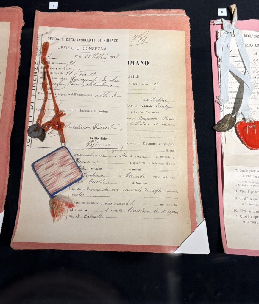 展示ケースの中には、色あせた布片、古びた金属の欠片、そして小さな手紙。イタリア語で書かれた文字の意味はわからなくても、「どうかこの子を生かしてほしい」という切実な想いが、静かに胸に響きました。母親の苦悩と愛情、そして社会に託すしかなかった命。その“断ち切られた絆”を象徴する半分のモニュメントは、時を超えて今も“ケアの原点”を語りかけてきているように感じました。